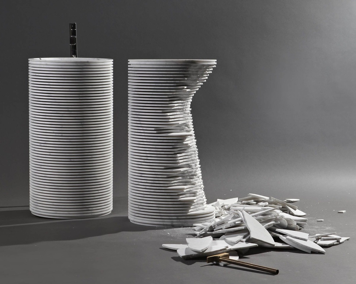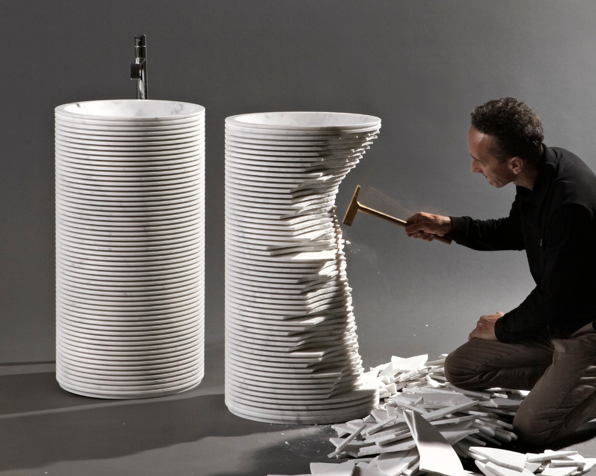 Паоло Улиан закончил Институт промышленных искусств во Флоренции, в начале 90-х городов работал со знаменитым Энцо Мари, затем сотрудничал с различными итальянскими компаниями, включая Italian Driade, Danish, Fontana Arte, Blue Pottery, Zani & Zani, Coop. Дизайнер выиграл множество международных наград, и его работы выставлены как в Италии, так и в лондонском Музее дизайна. Морено Ратти, выпускник Флорентийского университета, часто называет себя дизайнером-однолюбом — в последнее время он работает только с мрамором. Ратти внимательно изучает не только характеристики материала, но и технологии его добычи, обработки и доставки. Дизайнеры сотрудничают с 2013 года, вместе они воплотили ряд проектов, в том числе широко известный «+ or -» lamp, который был выставлен на Triennale в Милане и новом Музее искусств Реджио-Эмилия. Морено Ратти и Паоло Улиан отмечают, что формы изделий никогда не определяются заранее — они всегда результат творческой мысли, истории или производственного процесса. Философия всех проектов Паоло Улиан заключается в создании предметов, которые при определенном воздействии, или даже будучи повреждены, могут превратиться в другие вещи с новыми функциями. Introverso — не исключение. Покупатель сам принимает участие в создании вазы. Изначально модель продается в виде ровного куска мрамора с едва заметными специальными надпилами. Можно сохранить первоначальную прямоугольную форму или открыть другой силуэт с помощью обычного молотка, сломав края мрамора. Introverso, по словам Паоло Улиана, — это «ваза с двойной душой, она скрывает удивительную внутреннюю форму». Морено Ратти соглашается: «Это две параллельных истории — видимый внешний и тайный внутренний вид, каждый может решить, какую вазу он хочет увидеть».