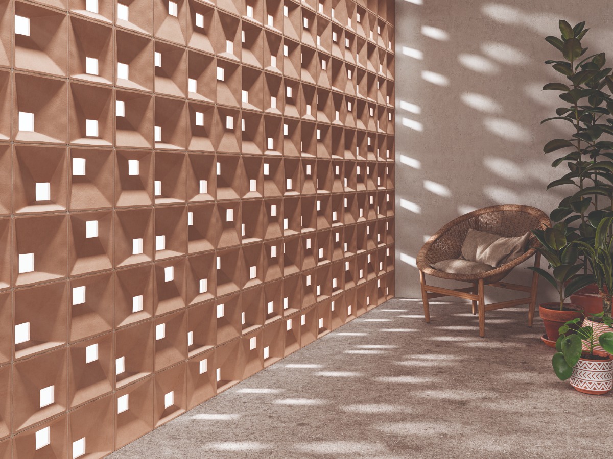 CASTELLO — первая керамическая плитка для создания рельефных решетчатых композиций, созданная студией Dsignio для линии HARMONY. Источником вдохновения для особенного изделия послужили бойницы средневековых замков. Отверстие в плитке смещено относительно центра и оси, поэтому для укладки можно выбирать один из восьми вариантов расположения. Это позволяет создавать большие поверхности, где повторения незаметны. В результате образуется интересная игра плоскостей, которые размещаются под разными углами, приобретая различные тона благодаря свету и тени. В эту игру вступают прямые лучи света: они проникают в окна и отображаются с другой стороны решетки, спонтанно образуя многочисленные световые прямоугольники. CASTELLO выпускается в трех расцветках.