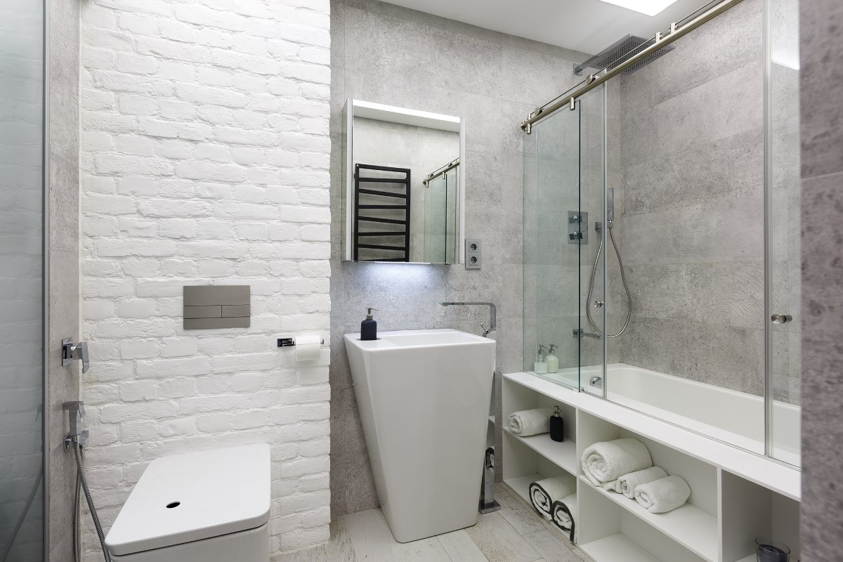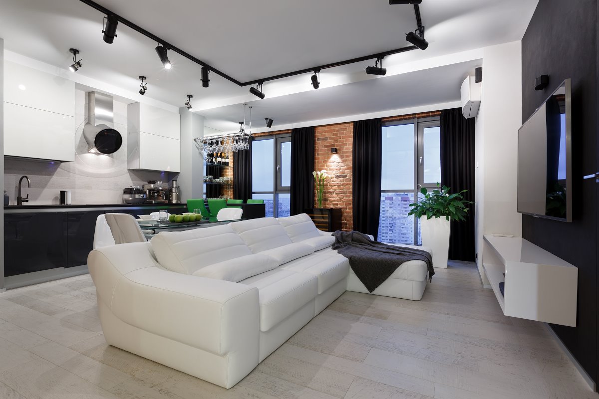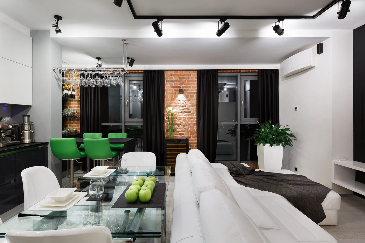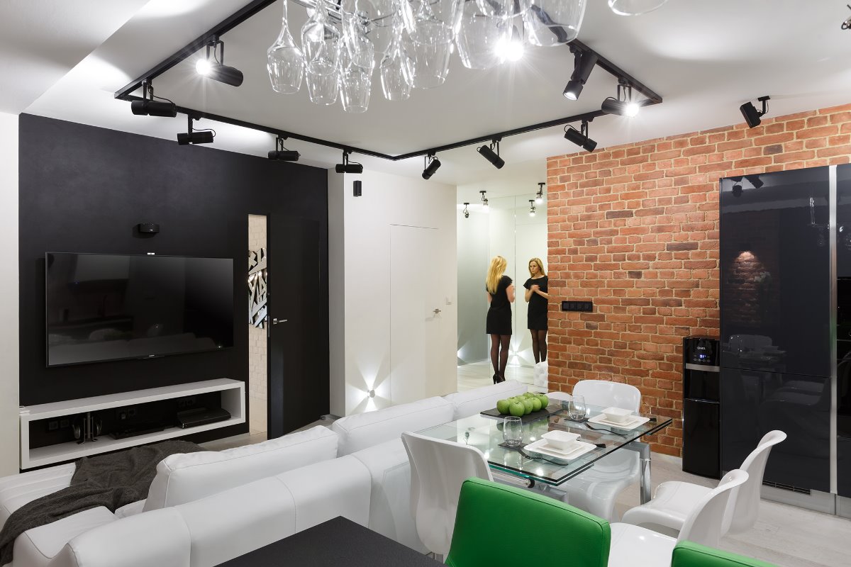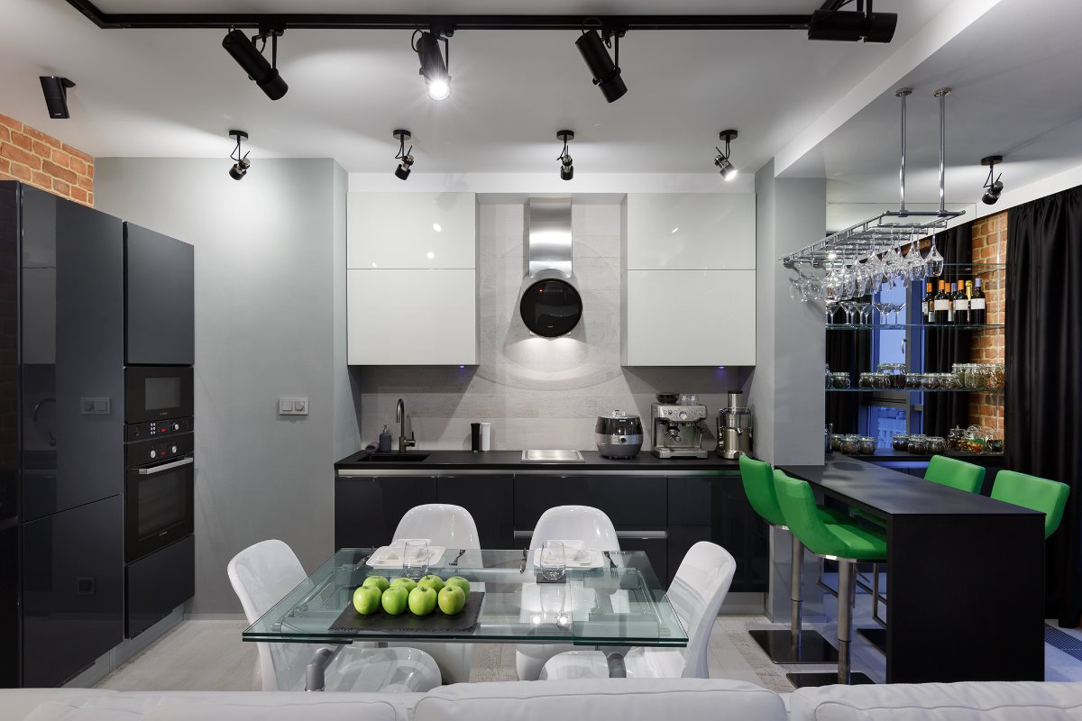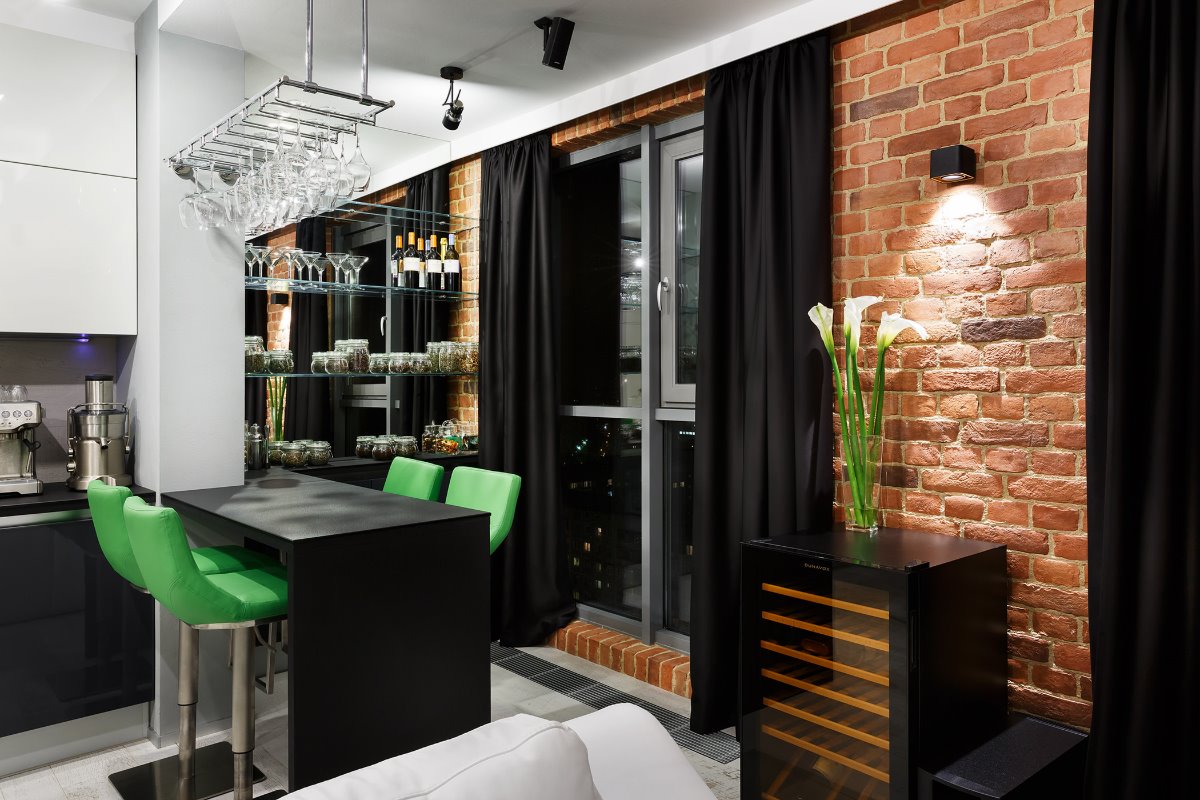 В проекте квартиры площадью 76 кв. м петербургский дизайнер Мария Василенко соединила жесткость и бескомпромиссность большого города с живой энергией природы. Следуя выбранному стилю, автор воссоздала атмосферу лофта: кирпичные стены, состаренный деревянный пол и прожекторы имитируют старое производственное помещение. Отдельного внимания заслуживают ванная комната и хозяйственный блок! Керамическая плитка PARK фабрики Porcelanosa выполнена в серой цветовой гамме и сочетает в себе безусловный тренд последних лет - иллюзию цементных покрытий. Игра текстур и рельеф поверхности дарят пространству необыкновенное хроматическое богатство! Ещё один must have для ванной в современном стиле - смесители испанской фабрики Noken. Они гармонично сочетают в себе новейшие технологии, функциональность, высочайшее европейское качество и превосходный дизайн.