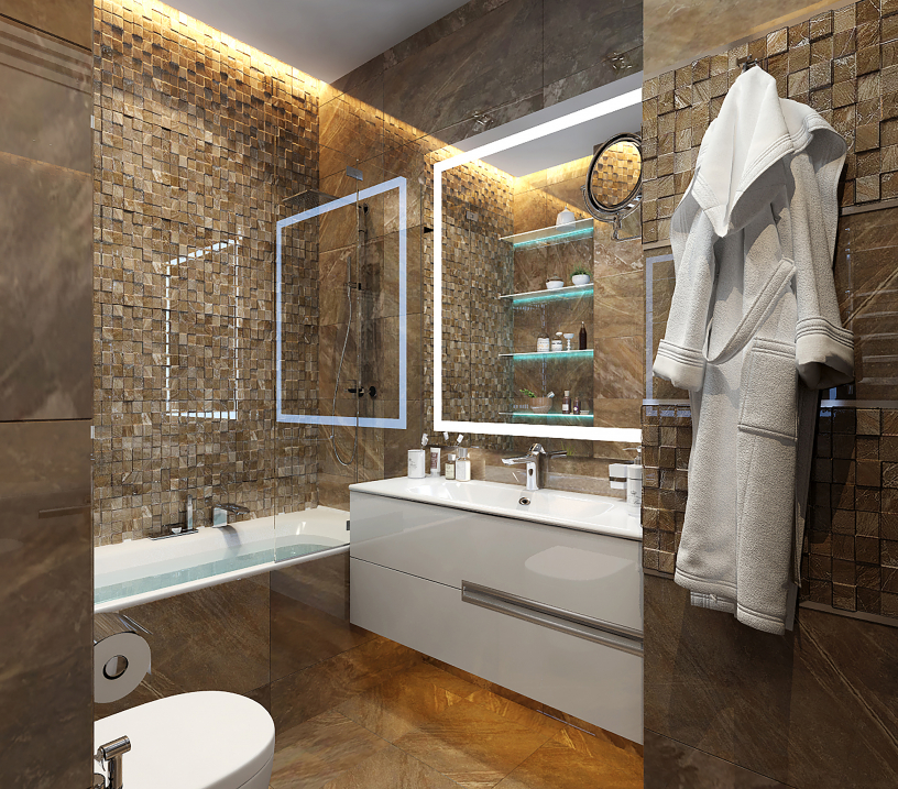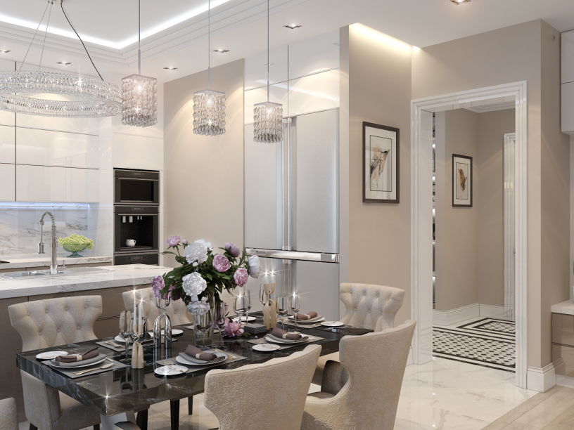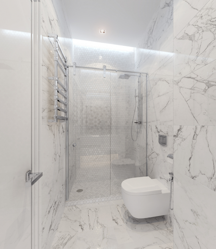Трёхкомнатная квартира получилась лёгкой и светлой. Каждая комната оформлена изысканно и со вкусом. В таком доме приятно не только проводить вечера в уютном семейном кругу, но и встречать гостей. Большая гостиная зона располагает к длительным посиделкам и общению. В проекте использовано несколько интересных коллекций керамической плитки. Прихожая-холл, плавно переходящая в кухонную зону встречает нас коллекцией PEARL фабрики Peronda. Кстати, по словам Елены, эта коллекция - её любимая и украшает уже целых 3 проекта. Ванная комната в тёмных, тёплых, коричневых оттенках выполнена керамической плиткой и мозаикой фабрики Porcelanosa. Керамогранит из коллекции RECIFE, обладая сбалансированным цветом и чуть приглушенной текстурой натурального камня, идеально подойдет для роскошных просторных помещений. Удивительное название, похожее на шепот волн, пришло из португальского – recife на языке этой страны означает риф. Загадочным спокойным глянцем именно этих прибрежных скал, отполированных морем до гладкого ровного блеска, светится жилое пространство, чьи границы обозначены плиткой RECIFE. Белый санузел-душевая -гостевой. В коллекции MARMOL CARRARA испанской фабрики Porcelanosa (@porcelanosa) красота ценнейшего белого каррарского мрамора, добываемого в Апуанских Альпах, соединилась с прочностью керамической плитки. Изделия MARMOL CARRARA имеют роскошный внешний вид, и, вместе с тем, более просты в укладке и в несколько раз долговечнее природного материала – не случайно эта коллекция является одной из самых популярных у Porcelanosa. Благодаря классическому дизайну и цвету – белая гладкая основа с серыми прожилками - эта крупноформатная ректифицированная керамическая плитка превосходно выглядит как на полу, так и на стенах ванной комнаты.