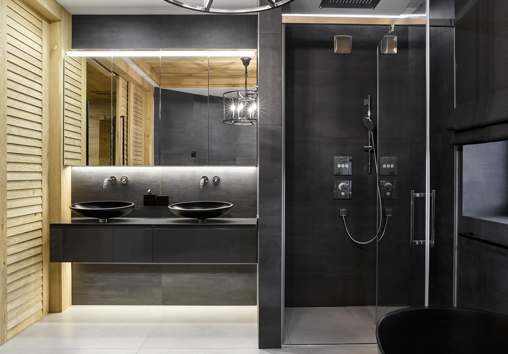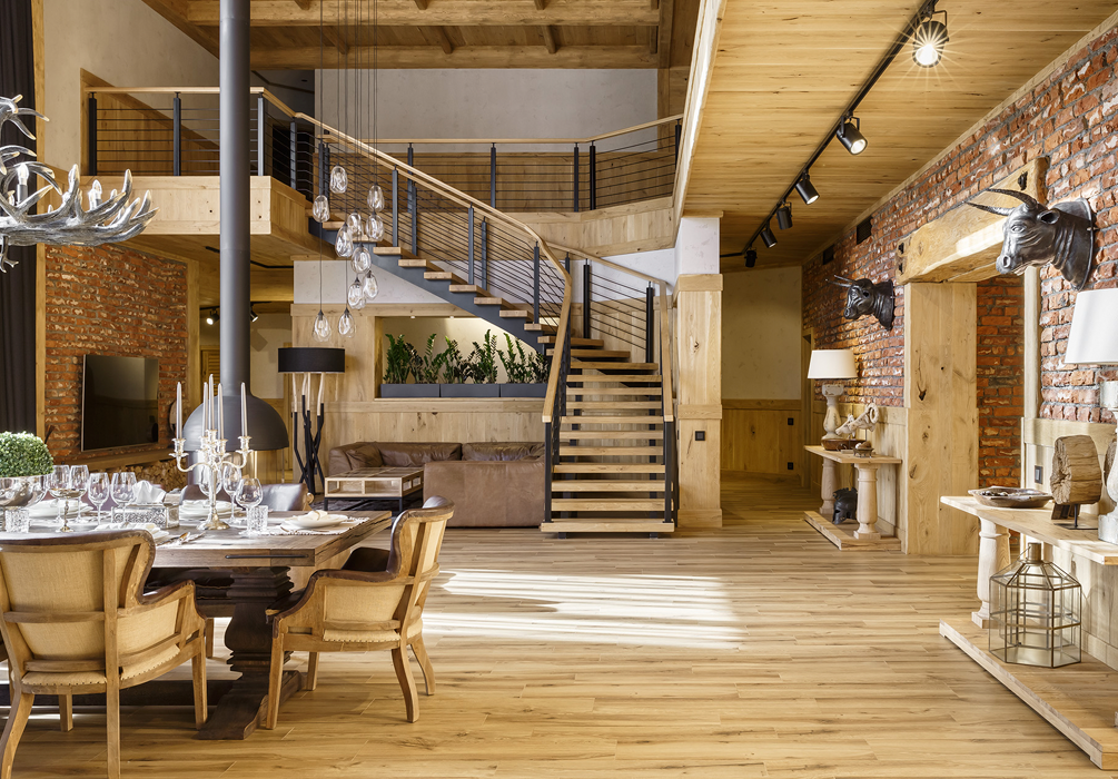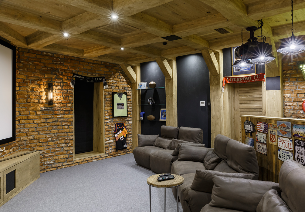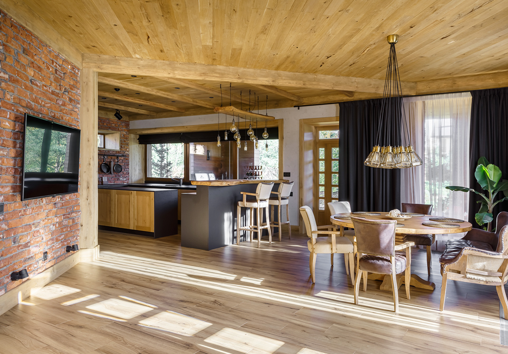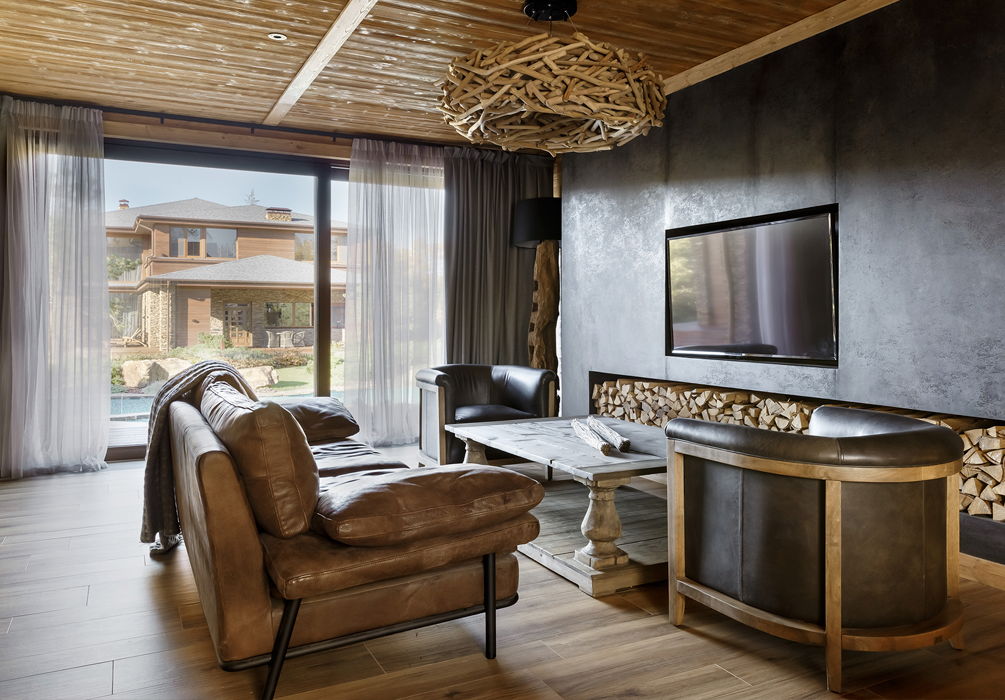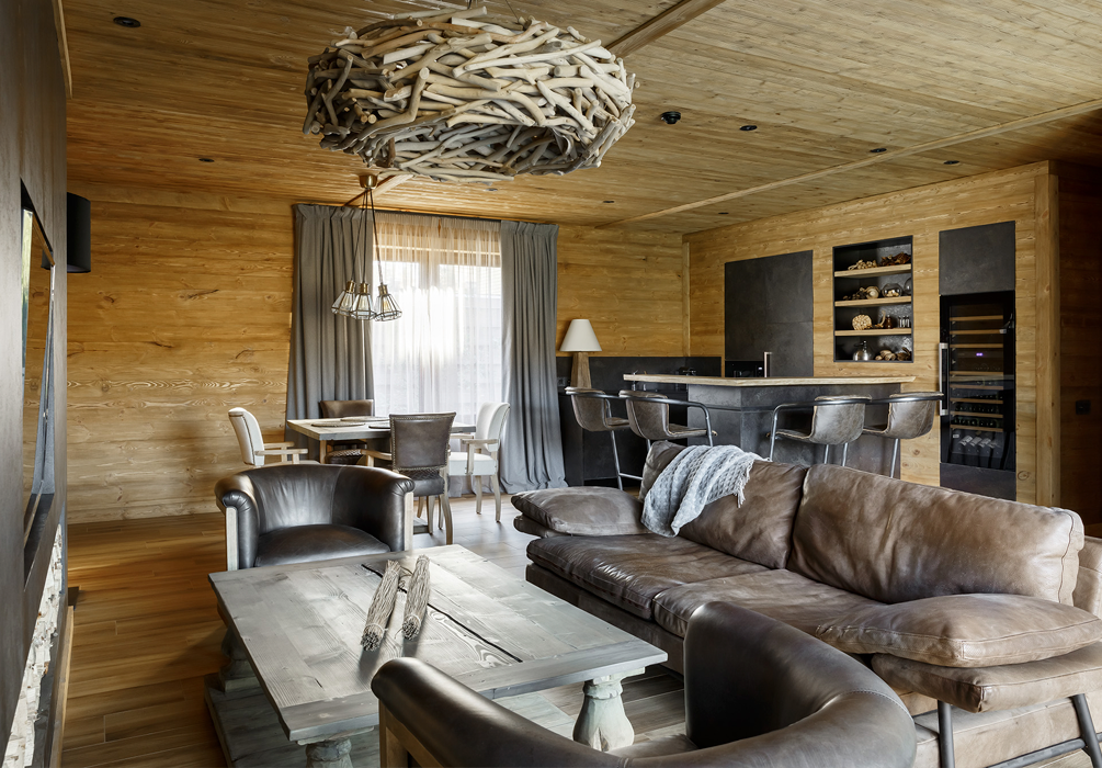 Много дерева и кирпича - таким было основное пожелание хозяина, а стилистический прообраз для своего загородного коттеджа площадью 800 м2 он нашел... в одном из ресторанов Петербурга. Интерьер самого дома действительно отдаленно напоминает какое-то заведение - закрытый клуб для самых близких и дорогих людей. В этом "клубе" есть спортзал и игровая для детей, огромное пространство для общения с каминной зоной и оригинальный кинозал с футбольным баром, а также "номер люкс" - хозяйская спальня, совмещенная с гардеробной и ванной комнатой, которую можно отделить или сделать частью общего пространства. Элементы разных стилей - лофта, шале, американской классики - гармонично переплелись в образе дома. От старинного "амбара" интерьер унаследовал стены из кирпича, вручную состаренного и уложенного нарочито небрежно. Гостиная зонирована на обеденную и диванную зону. Центром является напольный камин. На полу - плитка под дерево фабрики Settecento, коллекция My Home Quercia. Дизайн мужской гардеробной, суховатый и аскетичный, подчеркивает чёрный керамогранит на полу - - коллекция FAHRENHEIT от Graniti Fiandre. В санузлах эффектный чёрный санфаянс от фабрики Сeramica Сielo цвет BASALTO. Красоту санфаянса Мария подчеркнула чёрным керамогранитом FAHRENHEIT от Graniti Fiandre.