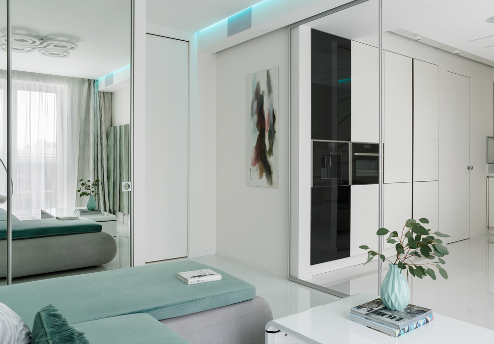 Проект двухкомнатной квартиры в центре Санкт-Петербурга выполнен в стиле минимализма с элементами хайтека. По словам Ирины, работать над проектом было увлекательно и интересно. Когда дизайнер и клиент на одной волне получаются такие стильные и уникальные интерьеры. В ванной комнате плитка фабрики Ceramica Bardelli. Производитель выделяется своим творческим подходом к дизайну керамогранита и привлечением к разработке самых именитых дизайнеров мира. Отсюда и такой удивительный результат. Глубины интерьеру добавляет белая плитка от PERONDA MUSEUM.