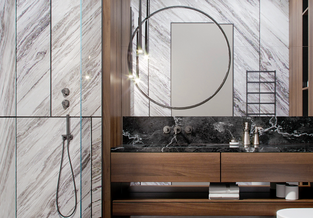 ПРОЕКТ С КРУПНОФОРМАТНЫМ КЕРАМОГРАНИТОМ. Дизайнер Екатерина Пихтина