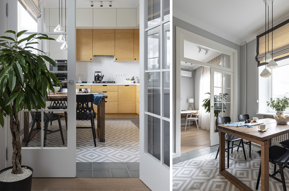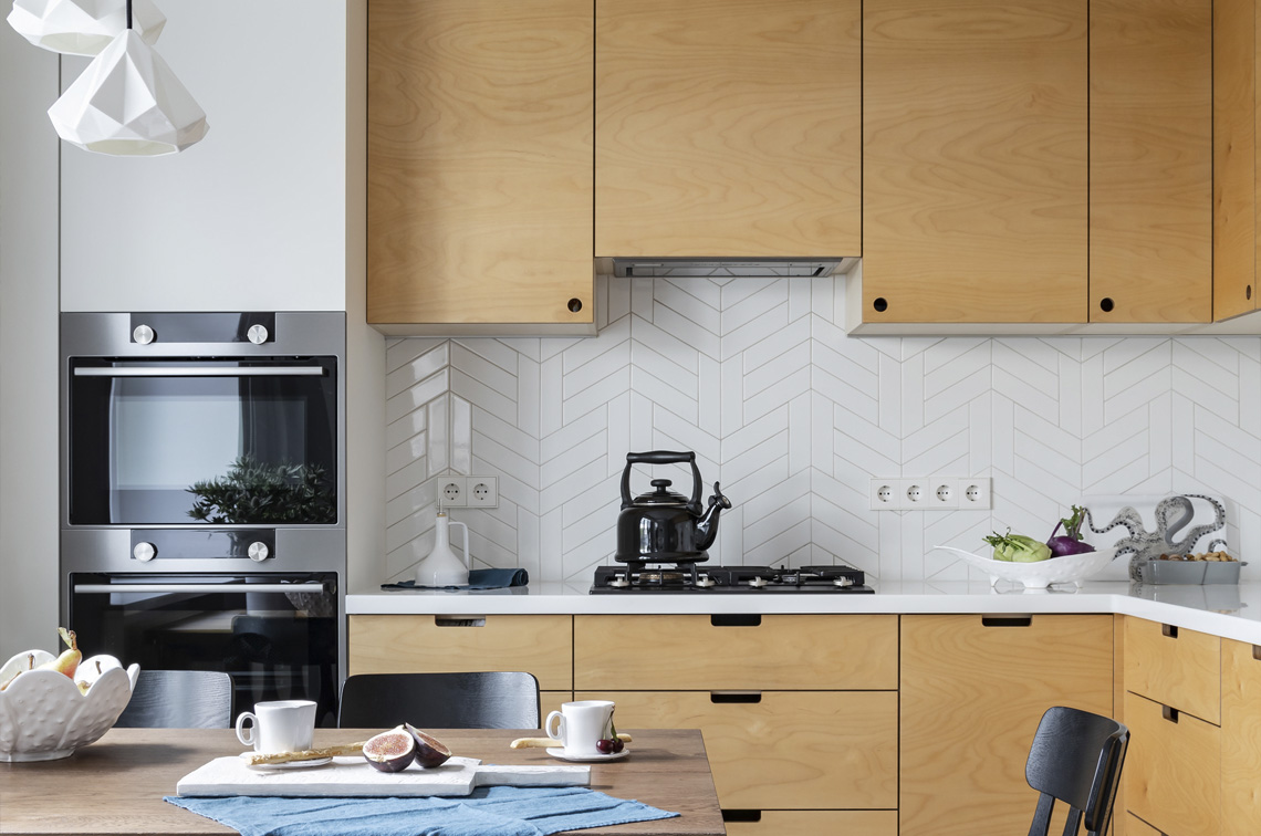 Проект в скандинавском стиле от дизайнера Никиты Зуба. Хозяева квартиры — семейная пара с ребенком школьного возраста. Они недавно переехали в Санкт-Петербург по работе. Заказчики хотели спокойный скандинавский интерьер, в который они могли бы привносить новые детали и акценты. Изначальная планировка не подходила новым хозяевам квартиры. Прежние жильцы объединили кухню, оборудованную газовой плитой, с жилой комнатой, разделив помещения перегородкой из гипсокартона — все в лучших традициях дизайна 1990-х. Сегодня такое решение считается незаконным, поэтому команда Никиты изолировала кухонную зону и за счет коридора добавила второй санузел . Главная героиня проекта — кухня с фасадами из фанеры. Она стала отправной точкой в создании всего интерьера. Красоту кухни подчеркнула плитка на фартуке. Ненавязчивая, белая, но оригинальная за счет формы и выкладки. Это коллекция CHEVRON WALL фабрика Equipe. Она есть в наличии на нашем складе. ⠀